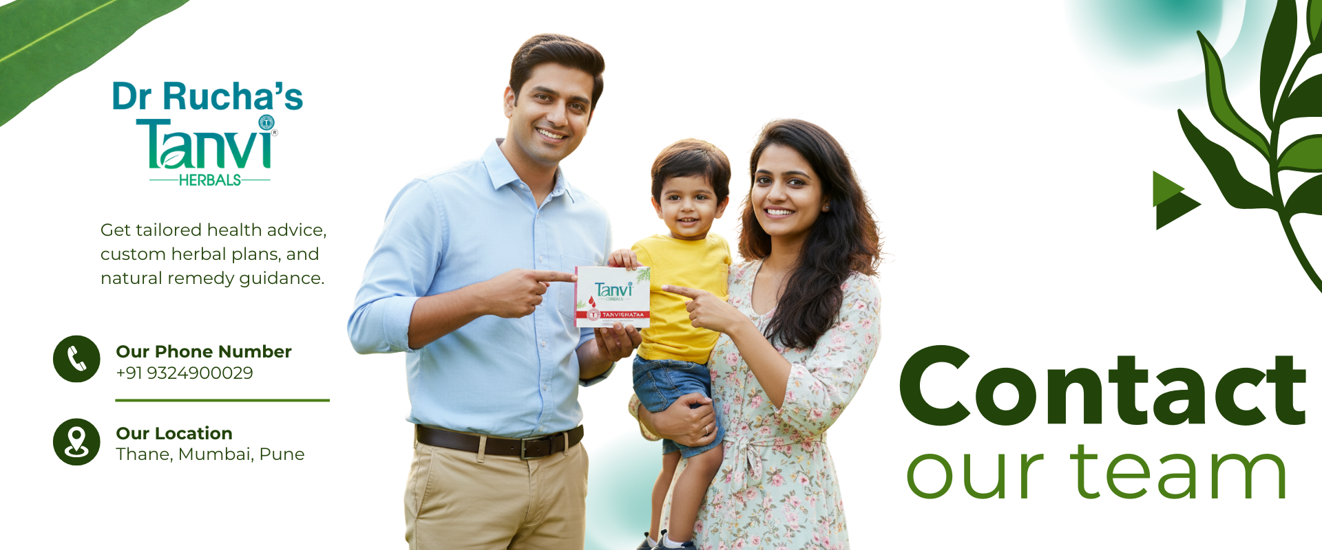 Mobile: +919324900029Email Us: dr.rucha@tanviherbals.comReg Address: Shop no. 1, Jeevantara CHS, opp Bhagwati School, Vishnu Nagar, Thane (W) - 400602