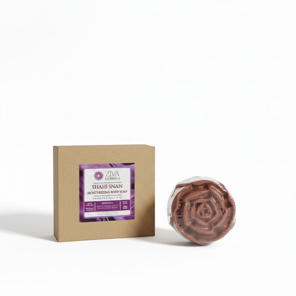 Experience the royal touch of Ayurveda with Shahi Snan, a luxurious soap enriched with Chandan (Indian Sandalwood) and Goat Milk. The cooling, aromatic essence of Chandan calms the mind and skin, while goat milk nourishes and replenishes moisture for a smooth, supple finish.
