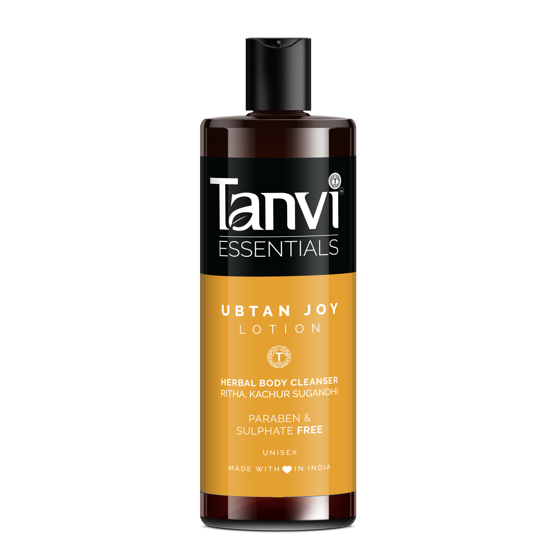 Ubtan Joy Lotion is a natural Ayurvedic body wash and exfoliating lotion inspired by traditional **ubtan** beauty rituals. It combines herbs like Wild Turmeric (Ambehaldi), Nagarmotha, and Ritha (soapnut) to cleanse and purify the skin, removing dirt and excess oil gently. Sandalwood and rose impart a cooling, soothing fragrance and help improve skin tone and texture, while Vetiver (Vala) and Anantmul detoxify and calm inflammation. Bakuchi (Bawchi) is included for its renowned benefits on pigmentation and glow. This herbal lotion can be used as a pre-bath mask or scrub, leaving the skin polished, soft, and naturally radiant. Regular use of Ubtan Joy Lotion helps in tan removal and imparts a youthful glow, making it an ideal Ayurvedic skin treatment for achieving clear, glowing skin.